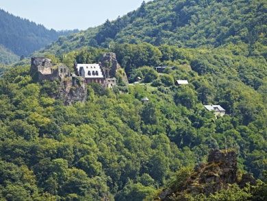 Neun Kilometer von Bernkastel-Kues entfernt auf 320 m Höhe über der Mosel thront die Burgruine, im 15. Jahrhundert die größte ihrer Art an der Mittelmosel. Daher durfte sie sich Schloss nennen.