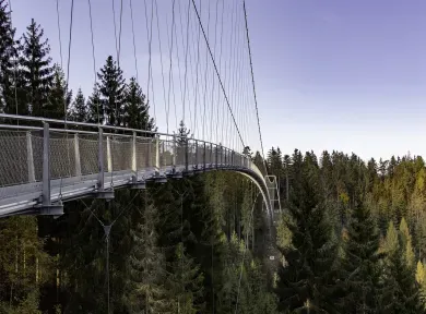 Die 2018 eröffnete 380 m lange Hängebrücke aus Stahl liegt auf dem Sommerberg und ist unmittelbar an den Bad Wildbader Märchenweg angebunden. Das Besondere daran: Sie steigt in der Mitte bis zu 10% an, so dass Besucher*innen das andere Ende nicht sehen! Ein spannendes Abenteuer für alle Menschen ohne Höhenangst.