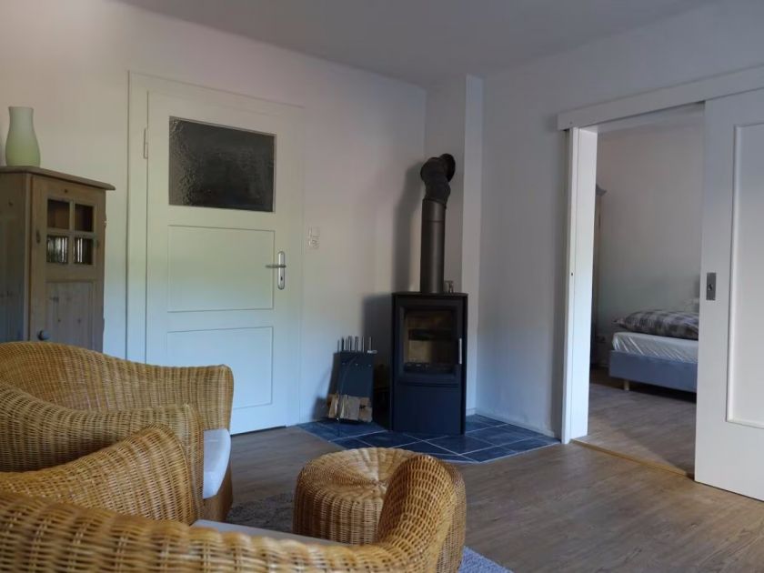 Bambi ist die kleinere Wohnung im EG des Hauses. Sie ist für maximal zwei Personen geeignet und verfügt über ein Schlafzimmer, Wohnzimmer, Küche und Bad mit Dusche. Von einem kleinen Freisitz  vor dem Haus unter dem Lindenbaum haben Sie einen wunderbaren Blick auf die Umgebung